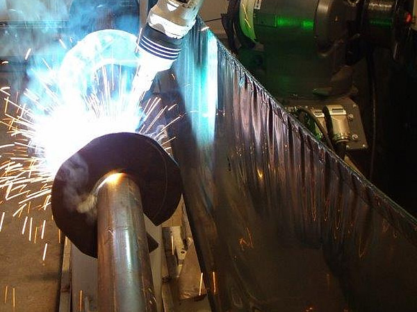Automatizamos parte do processo de solda com a utilização de robô industrial de soldagem.